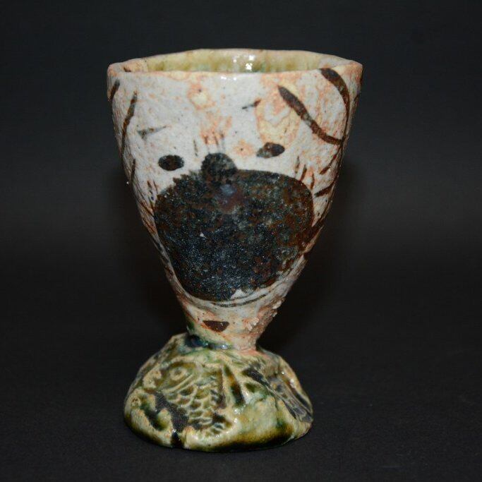 美濃焼 織部カニ文ゴブレット 酒器 早蕨窯 佐藤和次