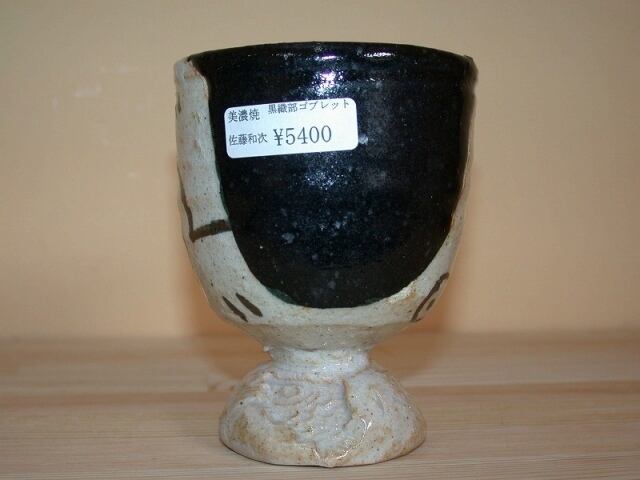 美濃焼 黒織部幾何学文ゴブレット 酒器 早蕨窯 佐藤和次